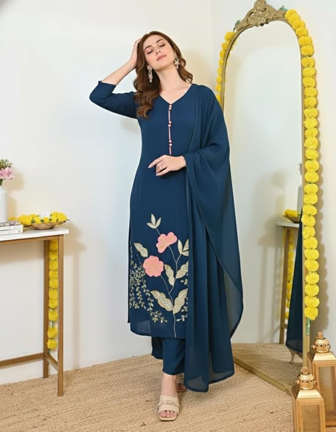 • Versatile & Gifting Choice: Perfect for festive wear, casual wear, office wear, daily wear and party wear, this women’s ethnic kurta pant dupatta set pairs beautifully with heels or flats. A thoughtful gifting option for birthdays, anniversaries, Diwali, Eid and special occasions.